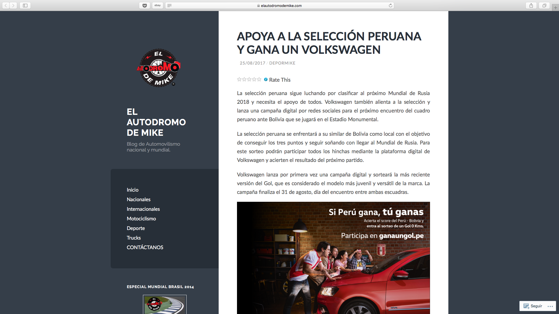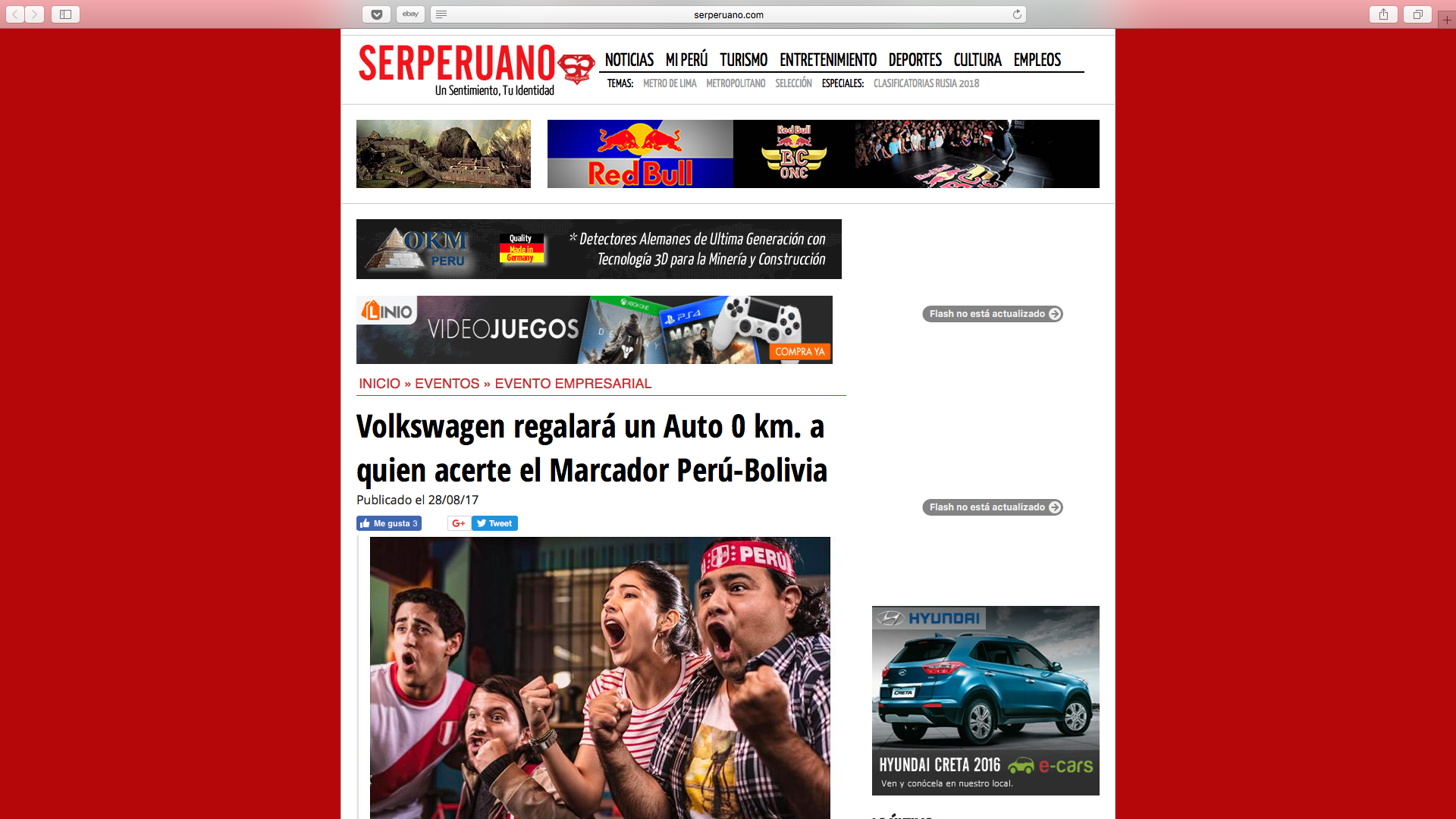 Volkswagen se une a las 30 millones de gargantas que esperan ver ganar a la selección peruana de fútbol y celebra esta fiesta, regalando un Volkswagen Gol 0 kms