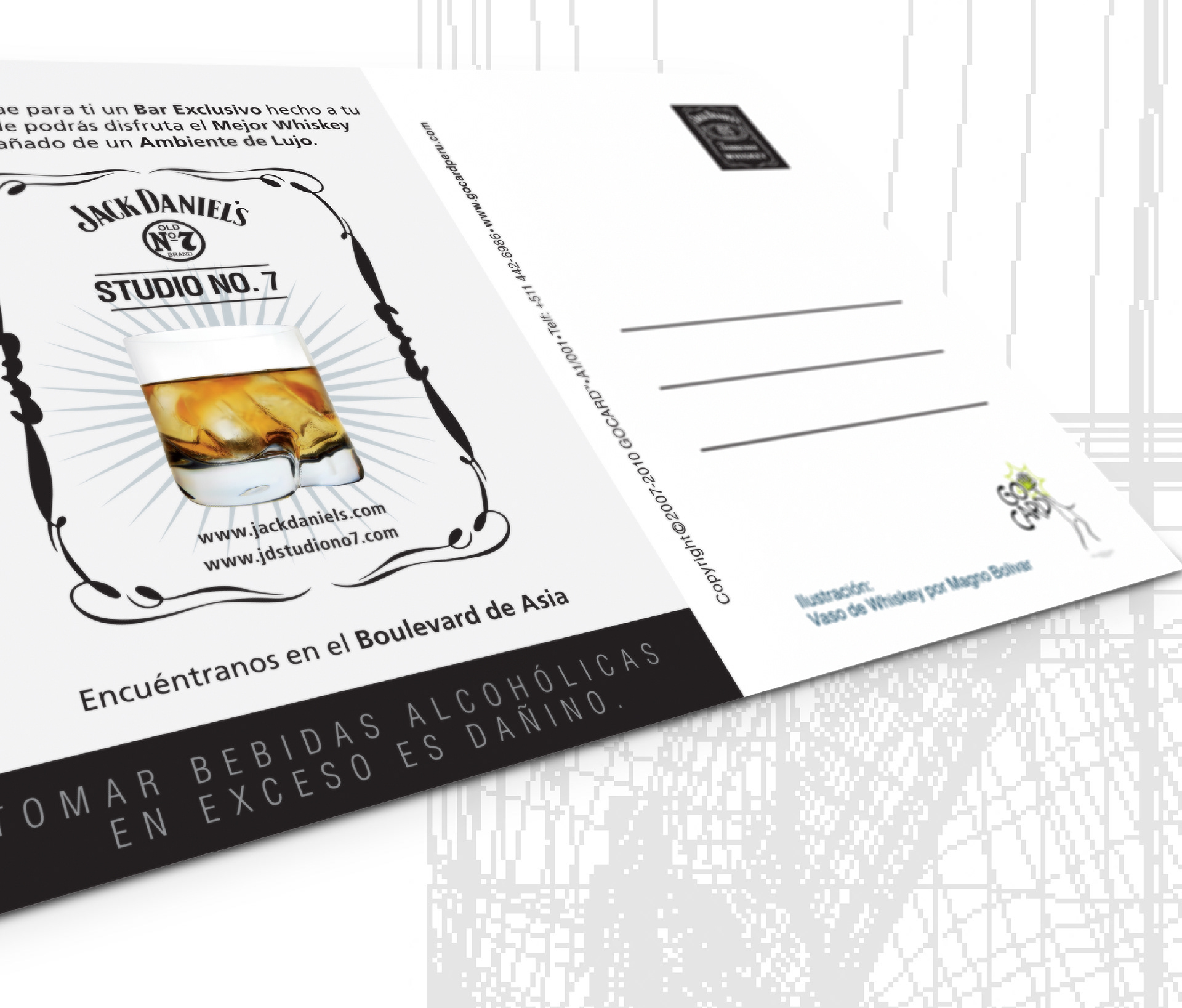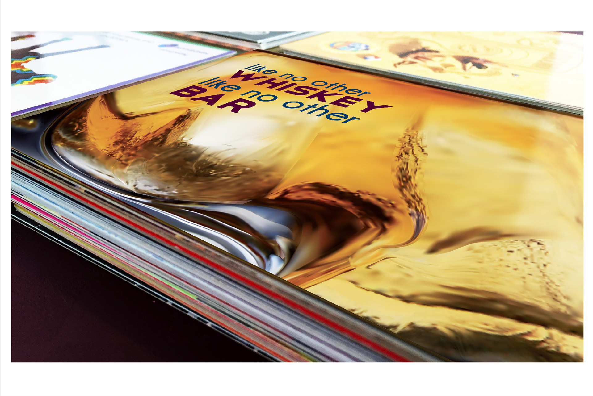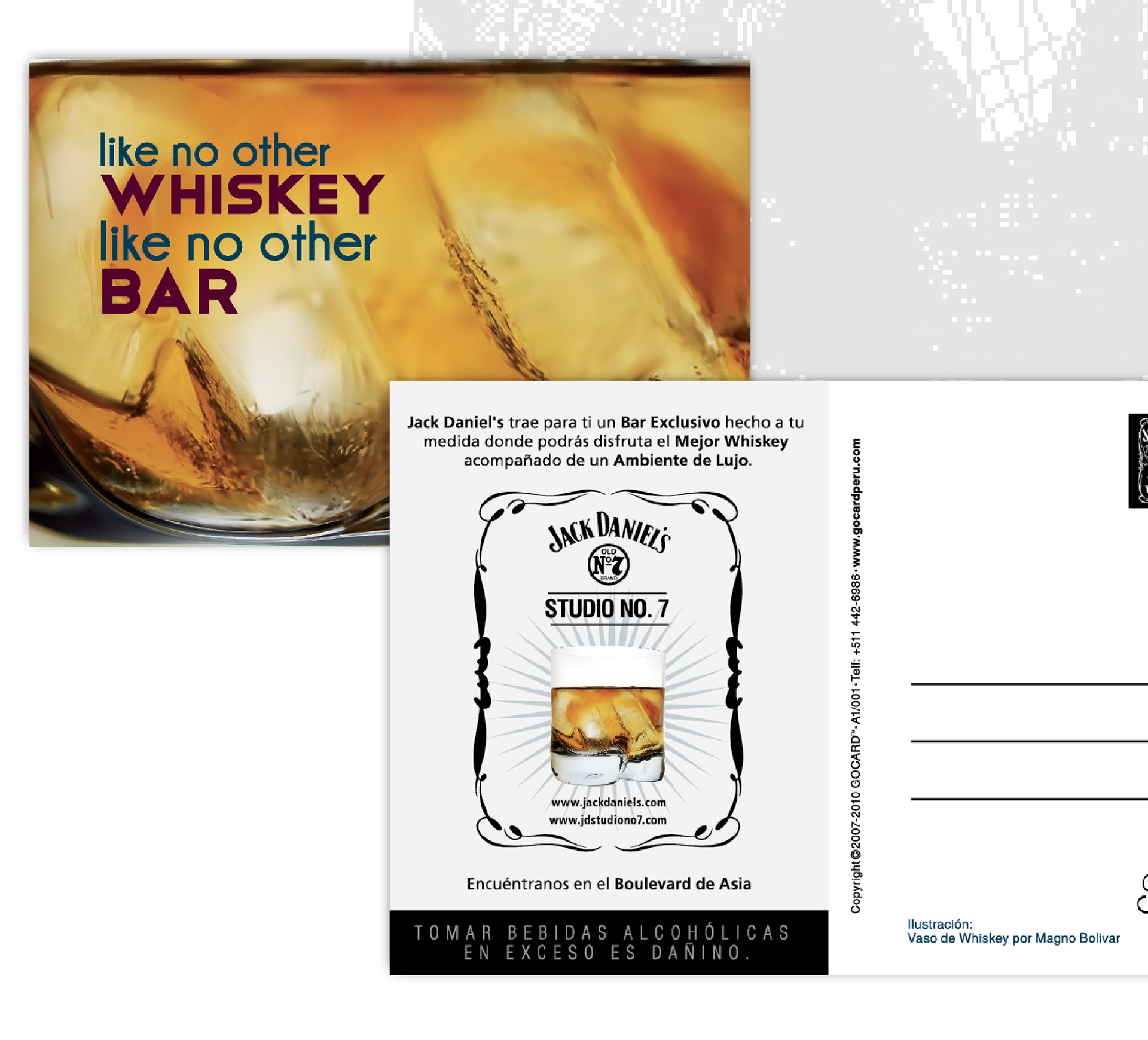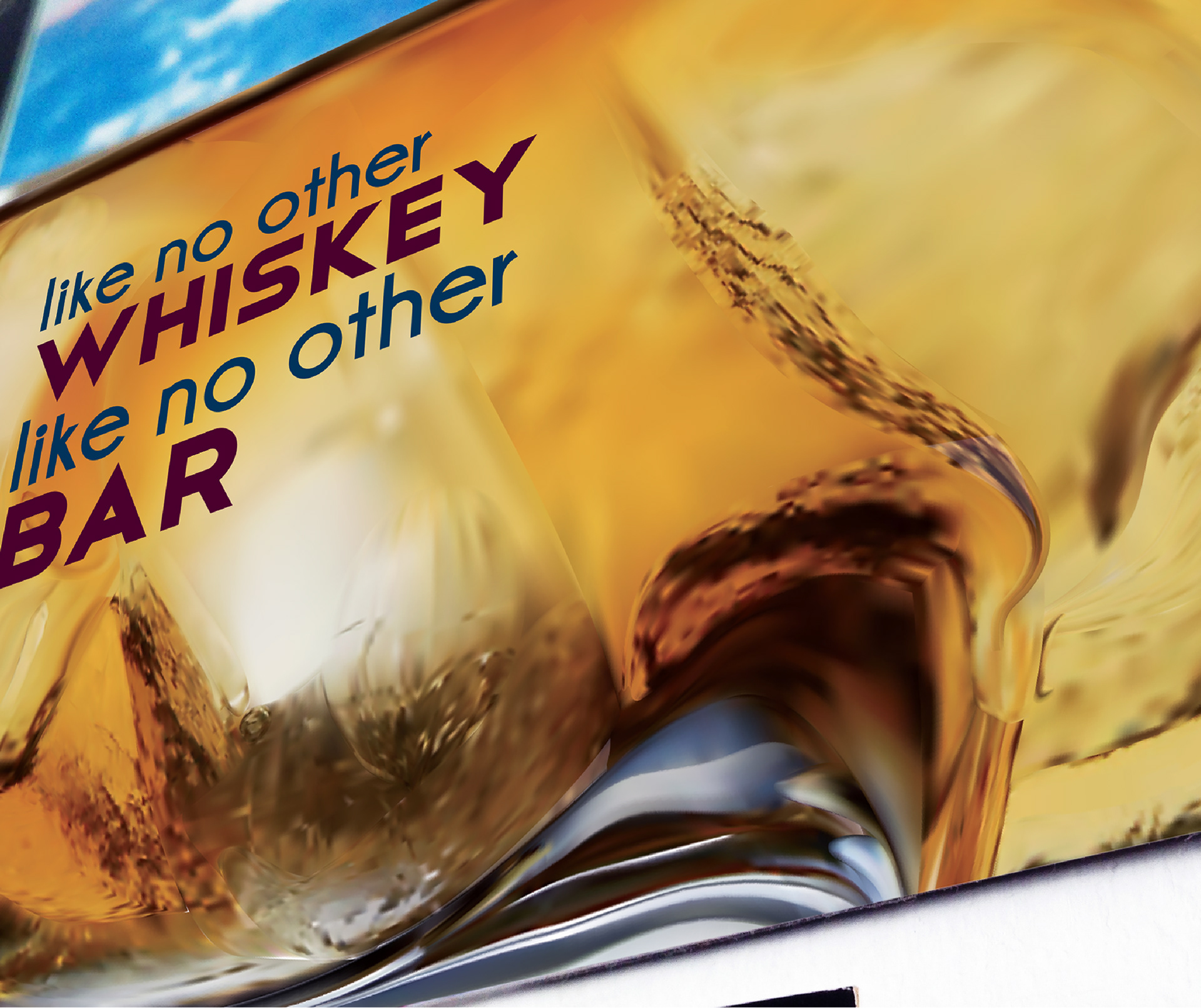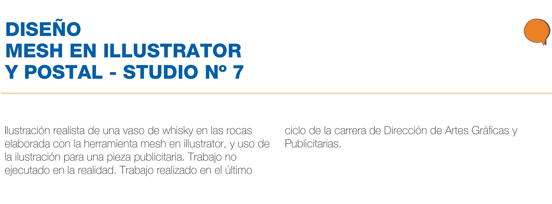 Año 2010. Ilustración realista de una vaso de whisky en las rocas elaborada con la herramienta mesh en illustrator, y uso de la ilustración para una pieza publicitaria. Trabajo no ejecutado en la realidad. Trabajo realizado en el último ciclo de la carrera de Dirección de Artes Gráficas y Publicitarias.