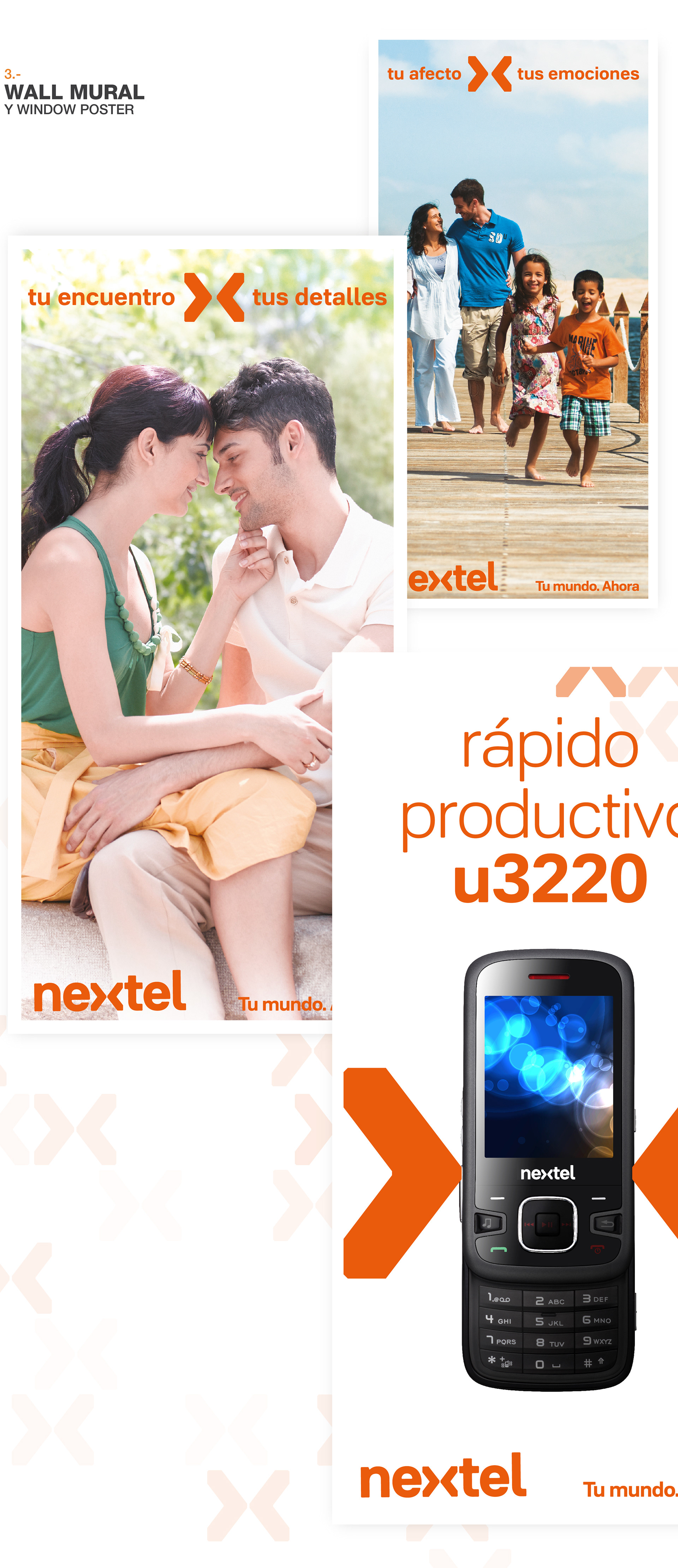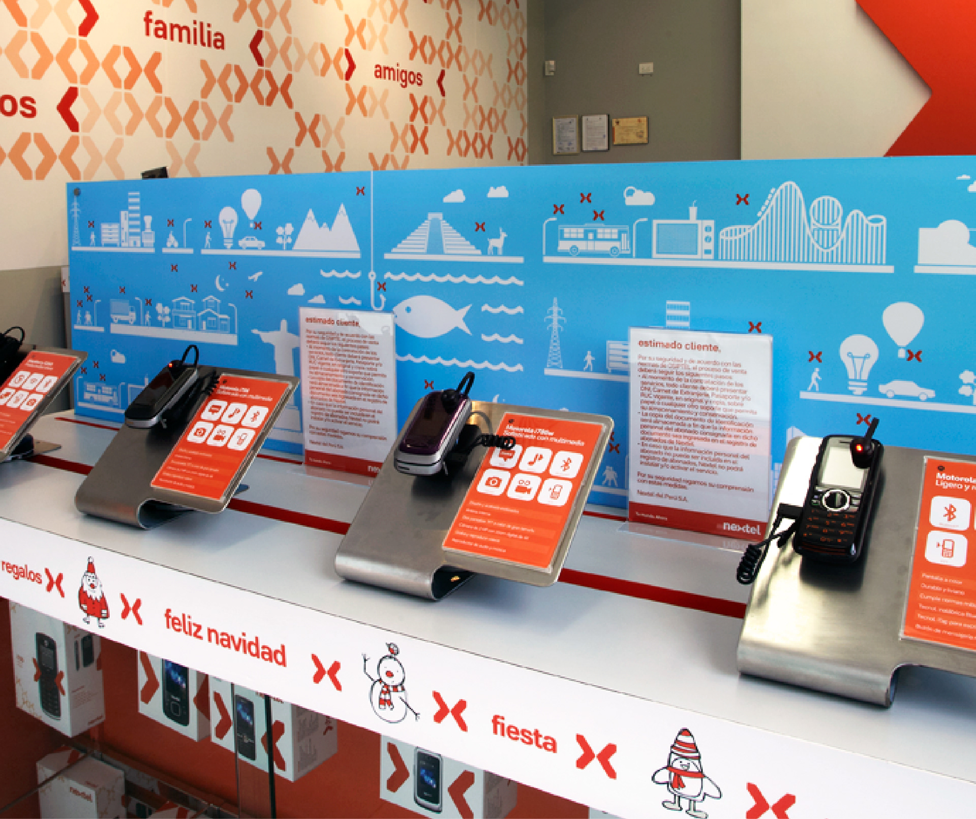 2011. Nextel cambió su imagen a nivel mundial, incluyendo Perú, para lo cual tuvieron que renovar totalmente sus centro de atención al cliente, desde la infrestuctura y diseño del mismo hasta la forma de tratar al cliente. Brandteam estuvo a cargo de la parte retail y POP de la campaña de relanzamiento en Perú para lo cual se realizaron las distintas piezas que irían dentro de los centros de atención al cliente. Director Creativo: Jorge Flores Director de Arte: Elio Gamarra Ejecutiva de Cuentas: Deborah Solis Diseñador: Magno Bolivar