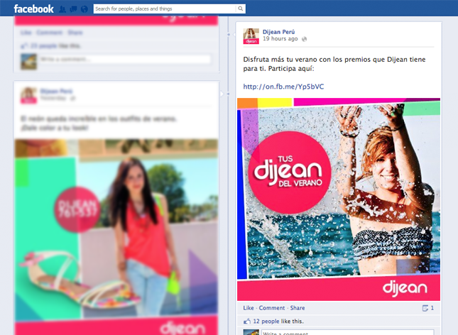 Diseño completo de la app Tus Dijean del Verano para la marca Dijean Perú. Facebook ads y post para la Fan Page de la marca.